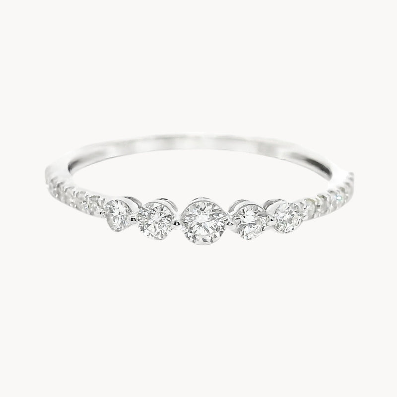 Designed for women who understand the power of their inner light, the Oprah ring is a designer piece crafted in 18-karat white gold. Its classic silhouette transforms into a statement of sophistication thanks to nineteen diamonds arranged in a subtle gradient, like a whisper of luxury crescendoing.