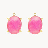 Pendientes de oro amarillo de 18 kilates con dos cuarzos rosas naturales en talla oval engastados en cuatro garras. Cierre presión. SOLO UNA UNIDAD EN STOCK.