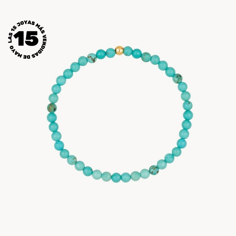 Pulsera elástica unisex con 42 bolas de howlita azul naturales y una bola en oro liso de 18kt.